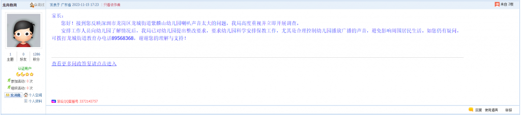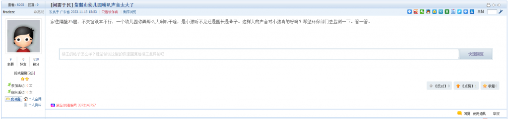 4、帖文《紫麟山幼儿园喇叭声音太大了》