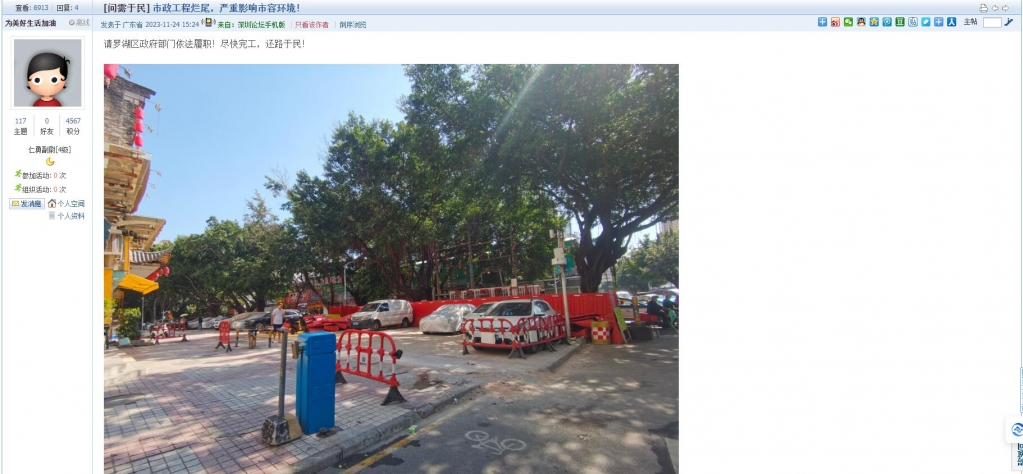 11、帖文《市政工程烂尾,严重影响市容环境!》