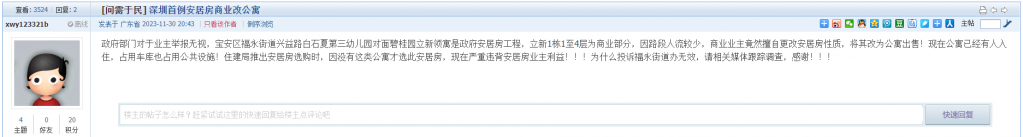 24、帖文《安居房商业改公寓,住建局管不管?》
