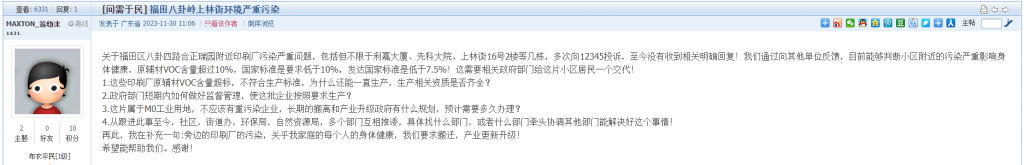 12、帖文《龙华*芬汽车喷漆车间味道严重,周边经常闻到很重的油漆味》