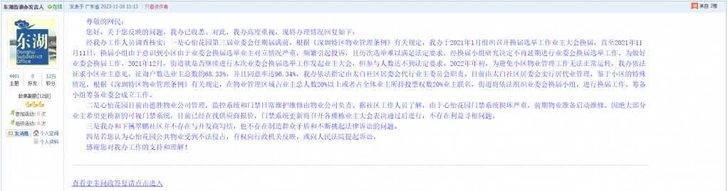 1、帖文《东湖街道办和鹏翠社区心怡花园居代业,存在严重问题》