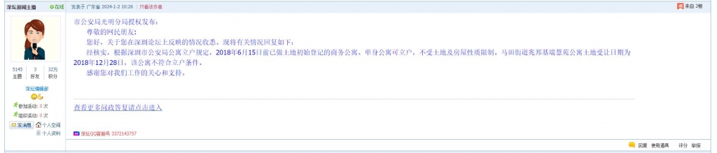 各职能单位如需对网友反映的问题进行回应,可在深圳论坛注册官方账号并通过认证,回帖进行回应。