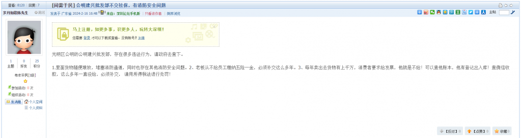 2、帖文《公明建兴批发部不交社保,有消防安全问题》
