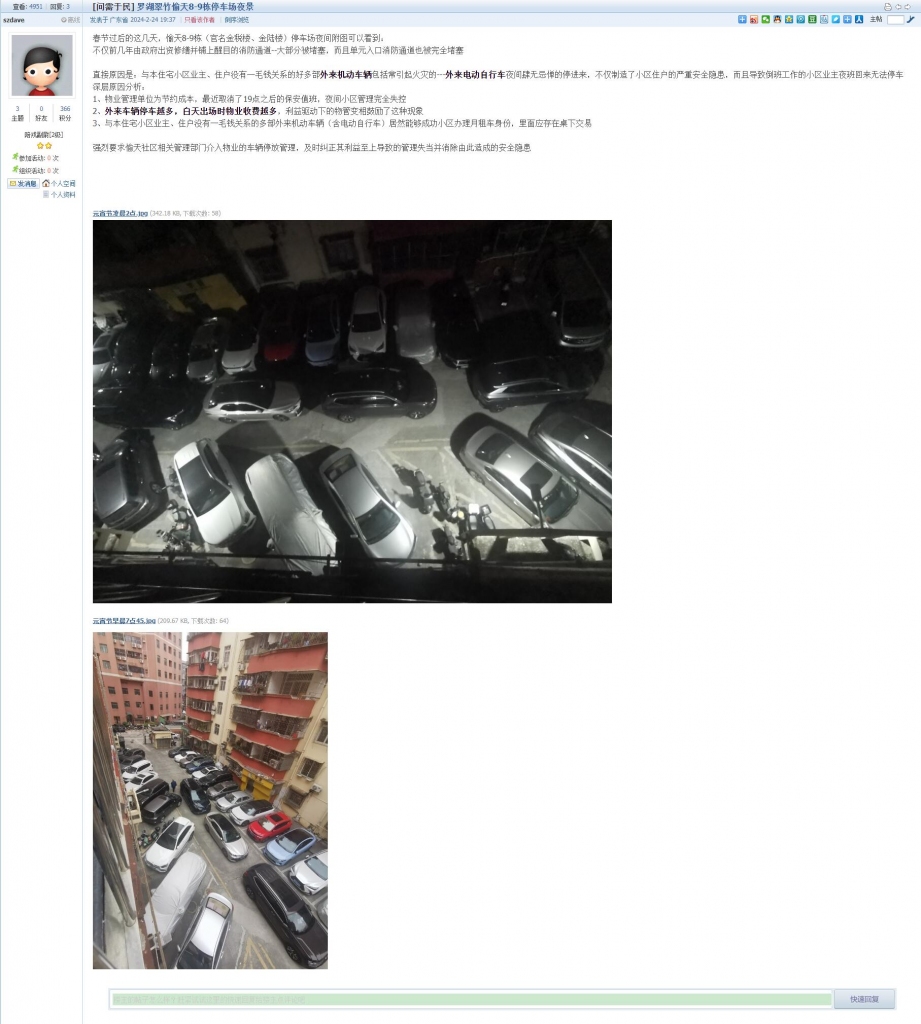 4、帖文《罗湖翠竹愉天8-9栋停车场夜景》