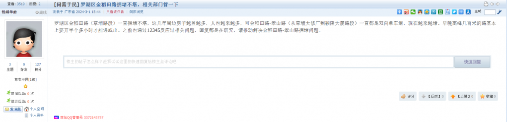 各职能单位如需对网友反映的问题进行回应,可在深圳论坛注册官方账号并通过认证,回帖进行回应。