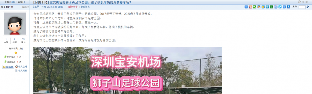 11、帖文《宝安机场的狮子山足球公园,成了接机车辆的免费停车场?》