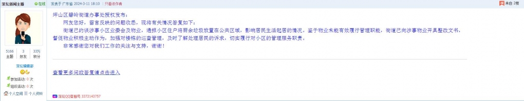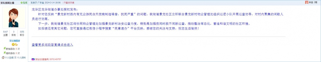 各职能单位如需对网友反映的问题进行回应,可在深圳论坛注册官方账号并通过认证,回帖进行回应。
