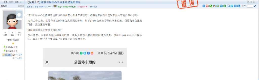 16、帖文《深圳北站中心公园未实现预约停车》
