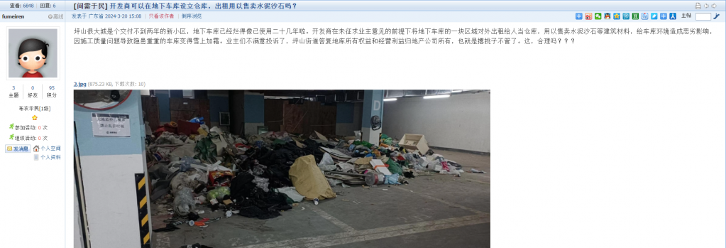 17、帖文《开发商可以在地下车库设立仓库,出租用以售卖水泥沙石吗?》