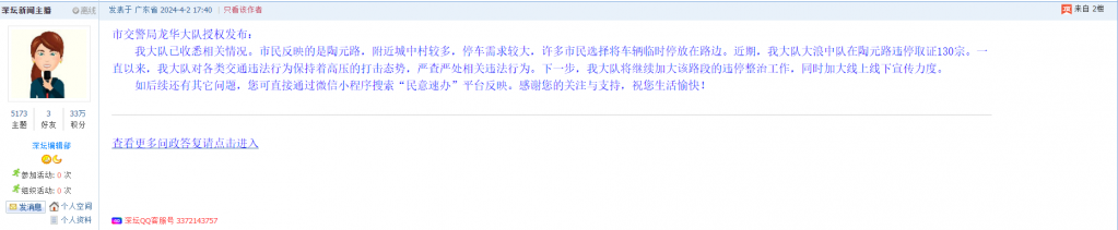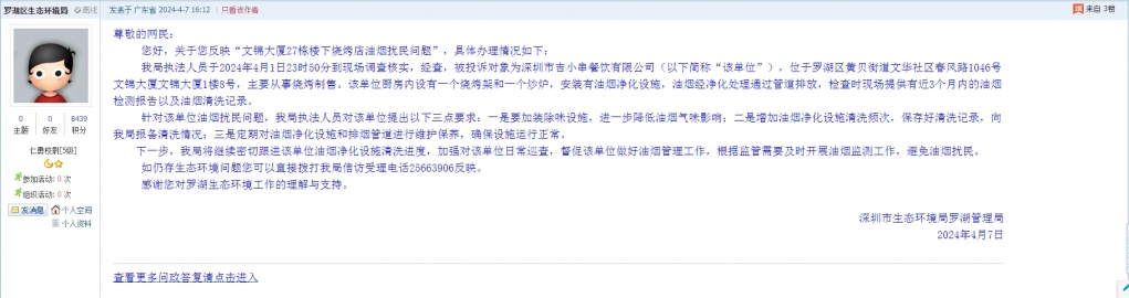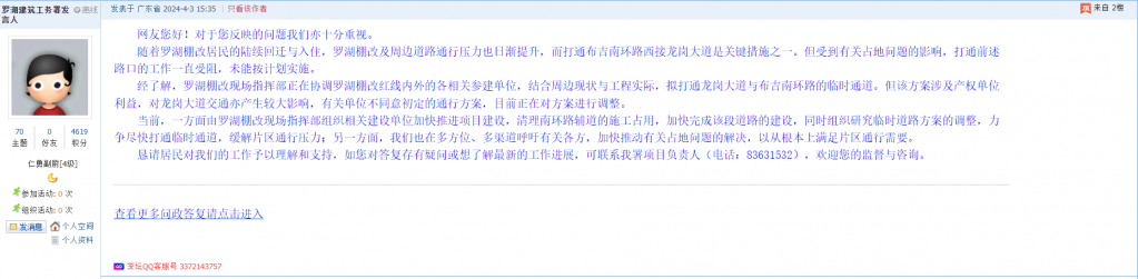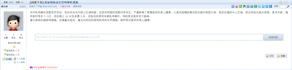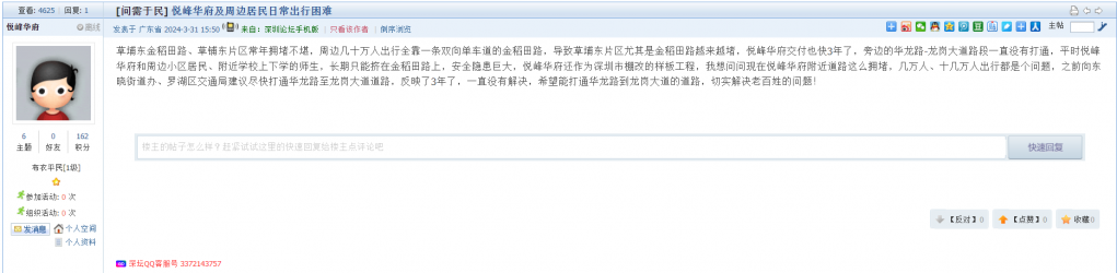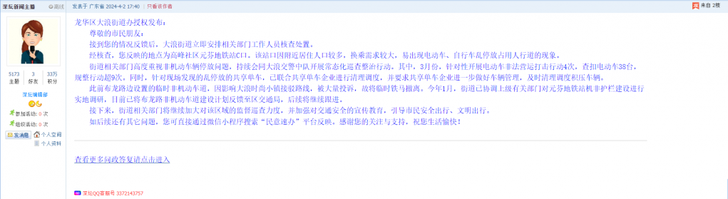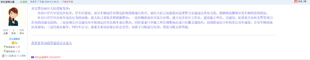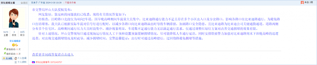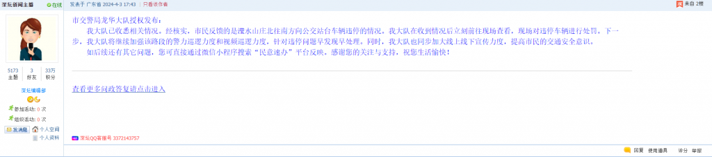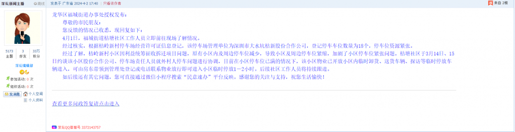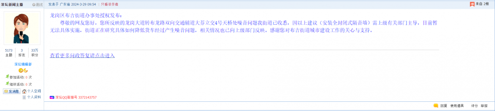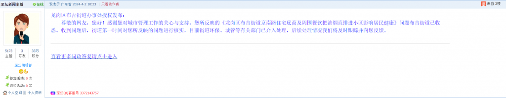 各职能单位如需对网友反映的问题进行回应,可在深圳论坛注册官方账号并通过认证,回帖进行回应。