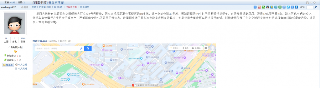 19. 帖文《龙澜大道(接观光路段)凌晨1-3点施工扰民》