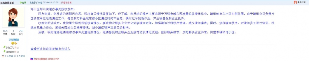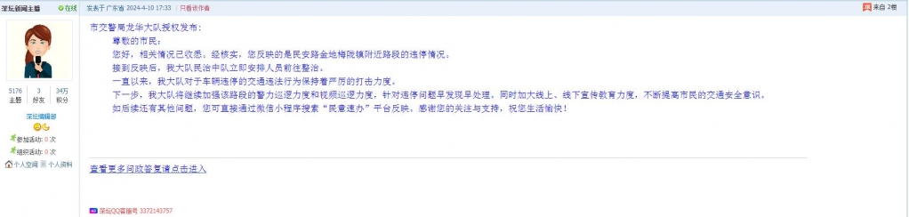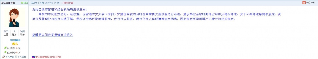 各职能单位如需对网友反映的问题进行回应,可在深圳论坛注册官方账号并通过认证,回帖进行回应。