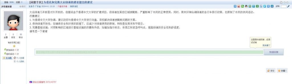 5、帖文《为优化和完善大运绿道的建设提出的建议》