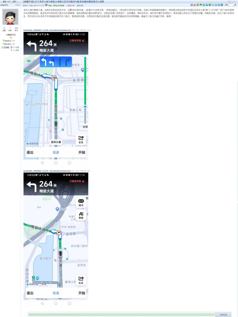 10、帖文《关于龙华大道与梅坂大道路口信号灯配时与配套设施问题的建议与观察》