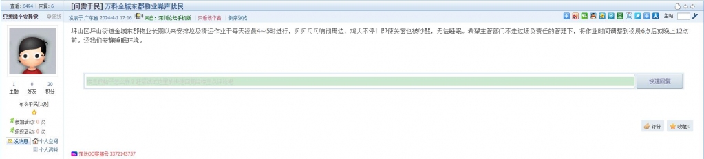 7、帖文《万科金城东郡物业噪声扰民》