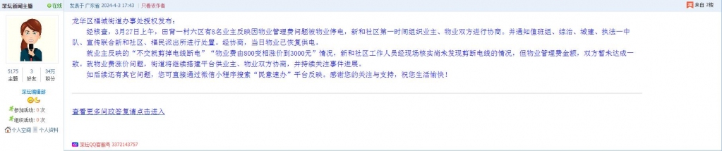6、帖文《龙华福城田背一村六区的物业管理费涨价》