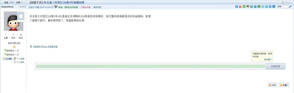 12、帖文《布吉新三村西区22巷5号油烟问题》