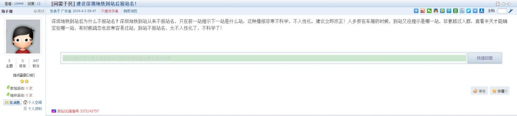8、帖文《建议深圳地铁到站后报站名!》