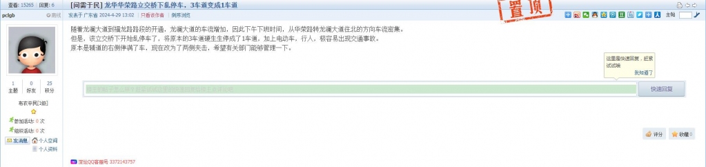 7、帖文《龙岗大道南行转粤宝路,不能让老实人吃亏。》