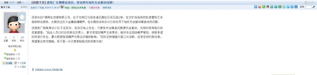 24、帖文《废铁厂长期噪音扰民,投诉两年始终无法解决问题!》