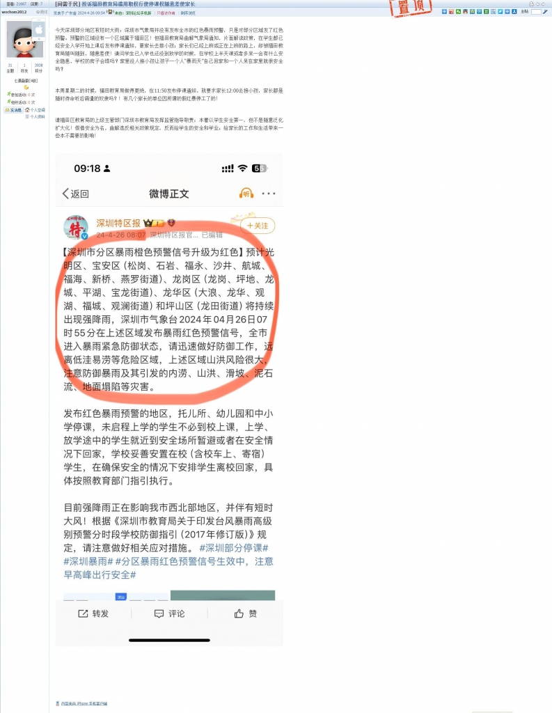 12、帖文《投诉福田教育局滥用职权行使停课权随意差使家长》