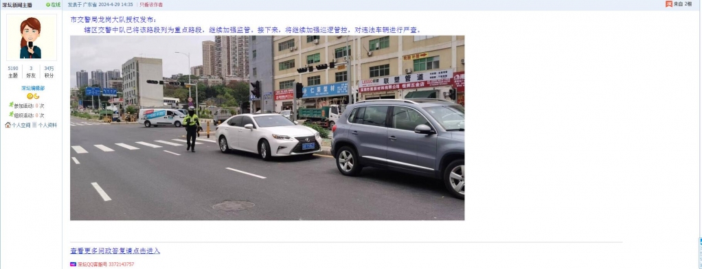 涉及单位:市交警局龙岗大队
