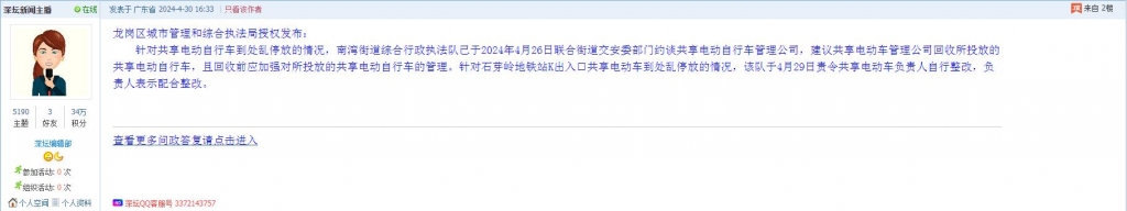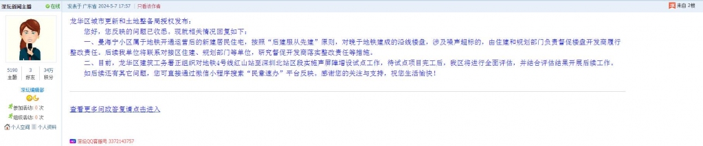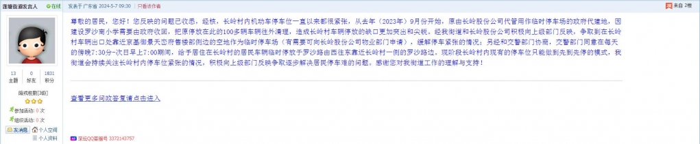 各职能单位如需对网友反映的问题进行回应,可在深圳论坛注册官方账号并通过认证,回帖进行回应。