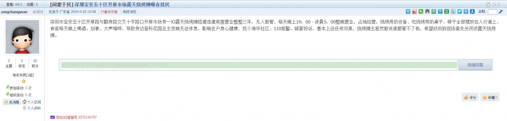 10、帖文《深圳宝安五十区开屏市场露天烧烤噪音扰民》