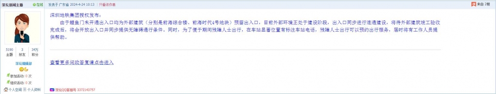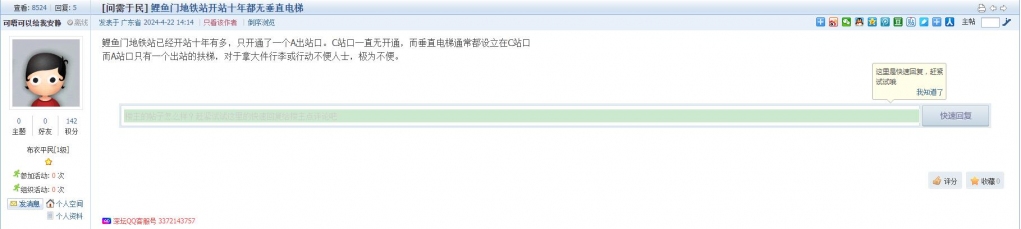 2、帖文《鲤鱼门地铁站开站十年都无垂直电梯》