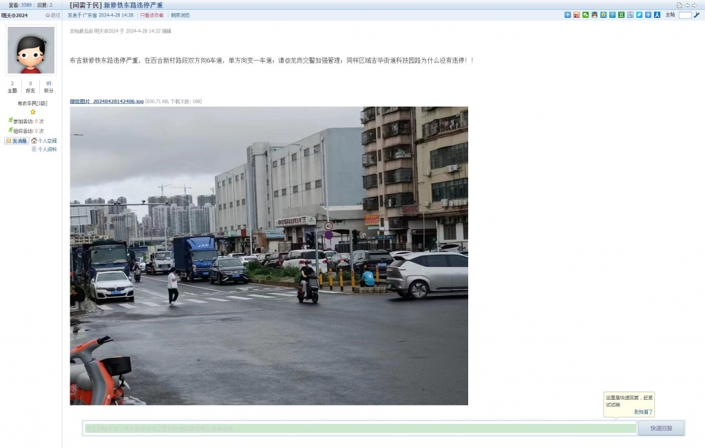 44、帖文《罗湖区中兴路长期违停,造成严重拥堵和噪音扰民!》