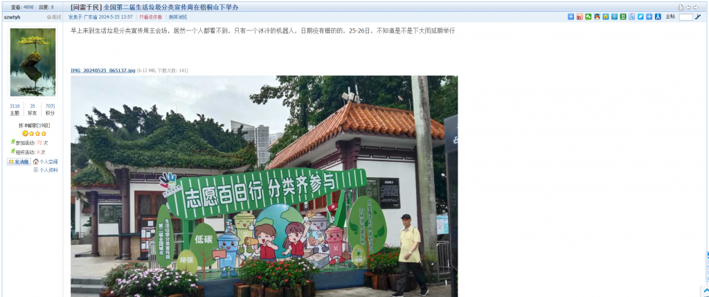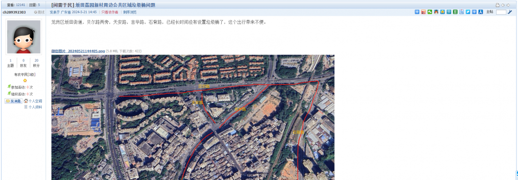 8、帖文《坂田荔园新村周边公共区域垃圾桶问题》