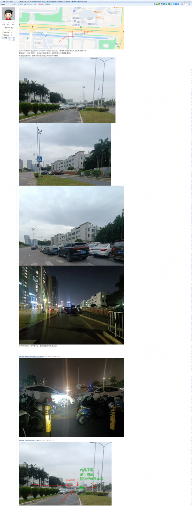 2、帖文《宝安沙井南环路往宝安大道方向(闳晖科技园公交站台),辅道常年被违停占用》