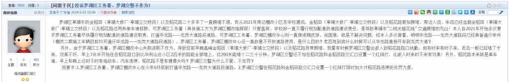 6、帖文《投诉罗湖区工务署、罗湖交警不作为!》