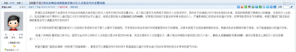 18、帖文《再次反映沿河南路新安路口行人过街信号灯设置问题》