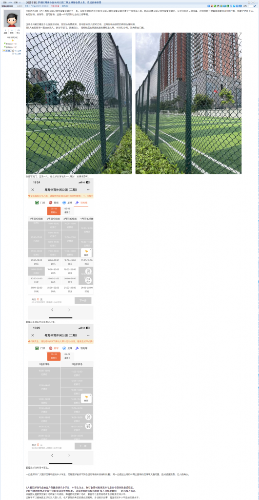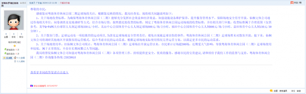 1、帖文《罗湖区粤海体育休闲公园二期足球场收费太贵,造成资源浪费》