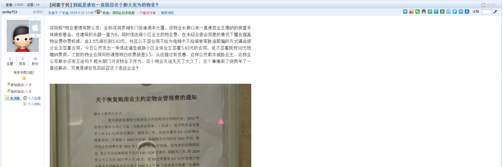 9、帖文《到底是谁在一直纵容这个胆大妄为的物业?》