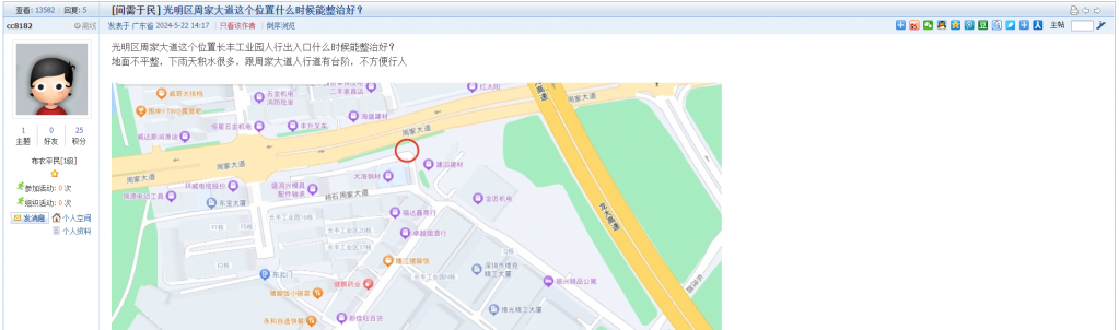 11、帖文《光明区周家大道这个位置什么时候能整治好?》