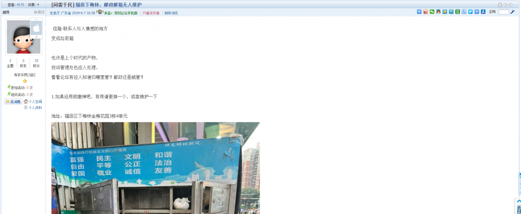 6、帖文《福田下梅林,邮政邮箱无人维护》