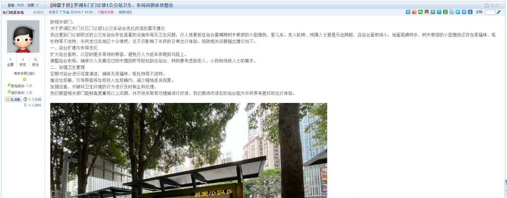3、帖文《罗湖东门门诊部1公交站卫生、布局问题亟待整治》