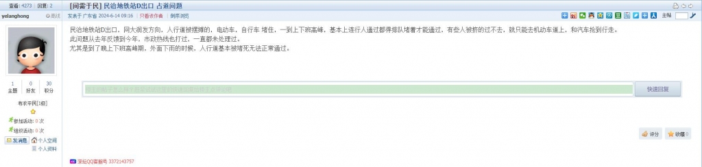 14、帖文《罗湖区太宁路非机动车停放点设置不合理安全隐患大风险高》