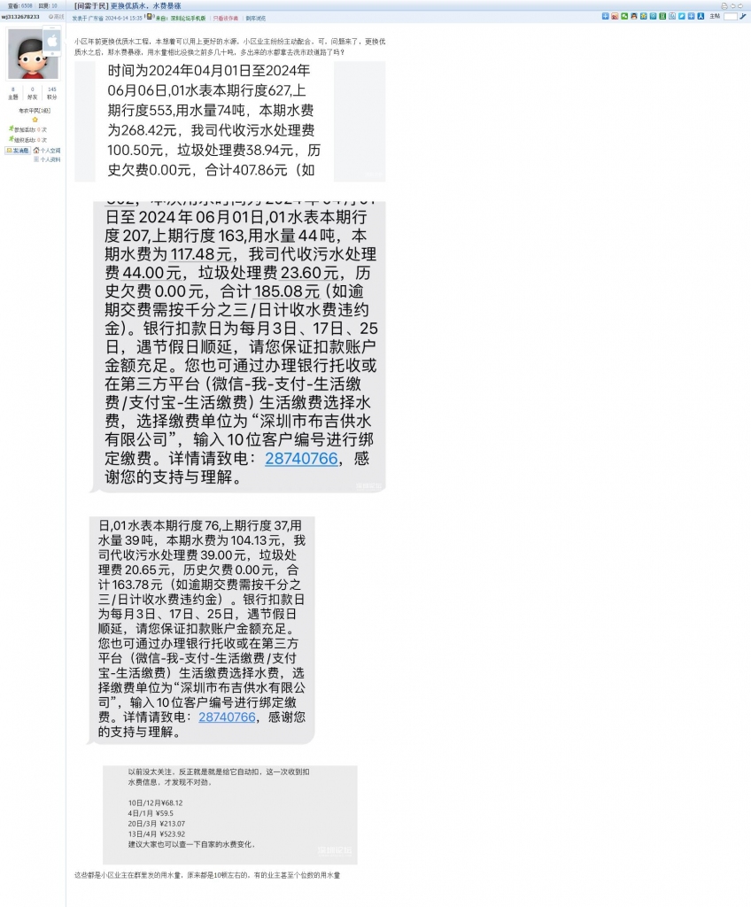 经核实,布吉水司呼叫中心曾于6月14日13:34接报该水量相关反映,该户2024年6月的抄表周期水量突增为159方。根据通讯记录显示,布吉水司工作人员曾致电并向该用户发送水量波动短信,拟告知其核查时发现的的异常情况。经反复确认,水量异常的原因是该抽水马桶出现漏水情况。考虑到该用户家中漏水的流量较大,布吉水司将按一阶水费单价对其水量进行计费。目前双方均达成一致处理意见。感谢市民对我们工作的理解与支持。