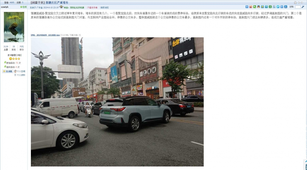 10、帖文《罗湖区莲塘街道为何将所有的路边空地都设置为电动两轮车自行车停车位,行人如何处之》