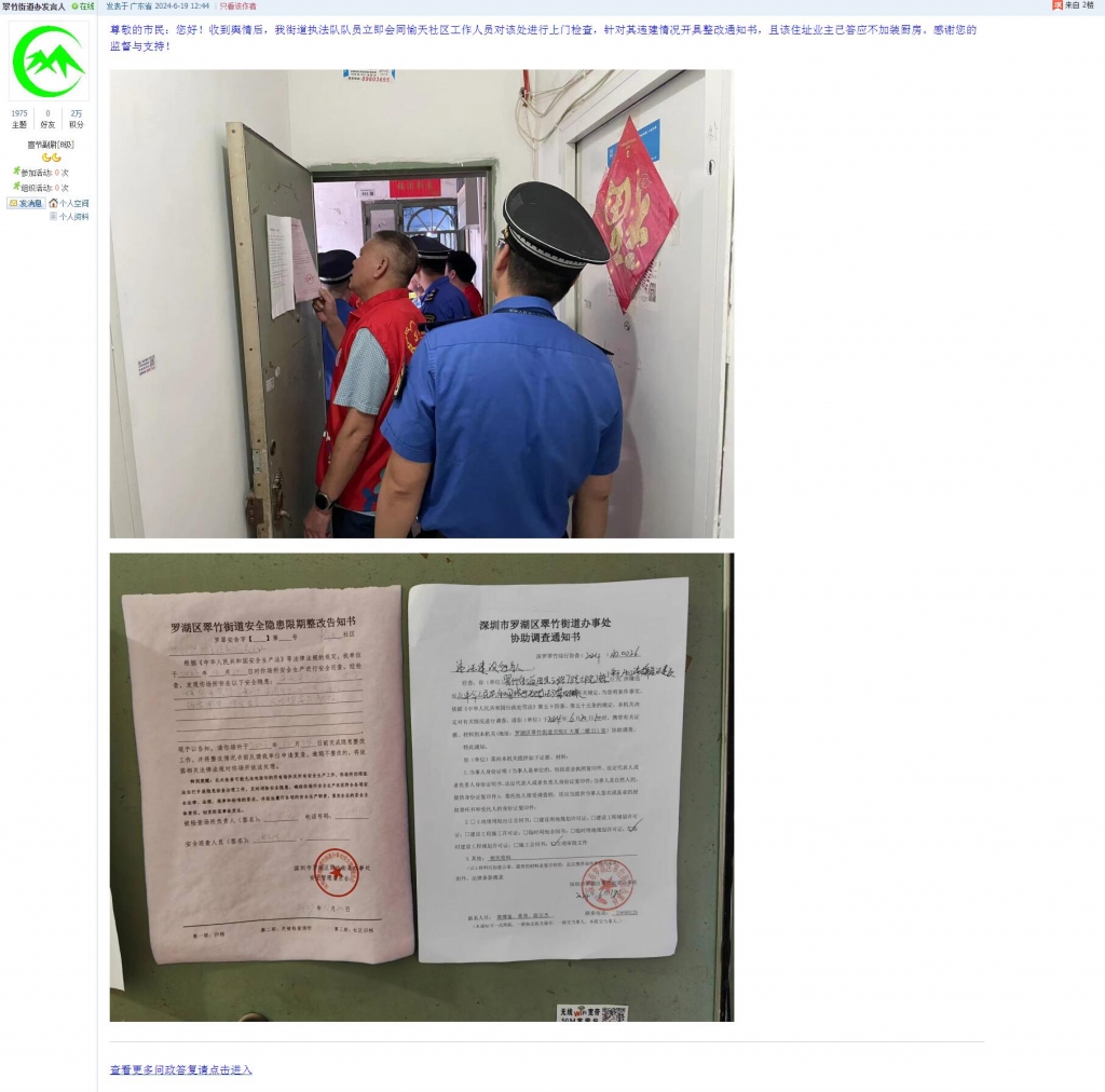 17、帖文《深圳市罗湖区田贝三路78号房中房二次装修加装厨房,请住建局,城管管一管,并制止和拆除》