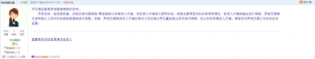各职能单位如需对网友反映的问题进行回应,可在深圳论坛注册官方账号并通过认证,回帖进行回应。