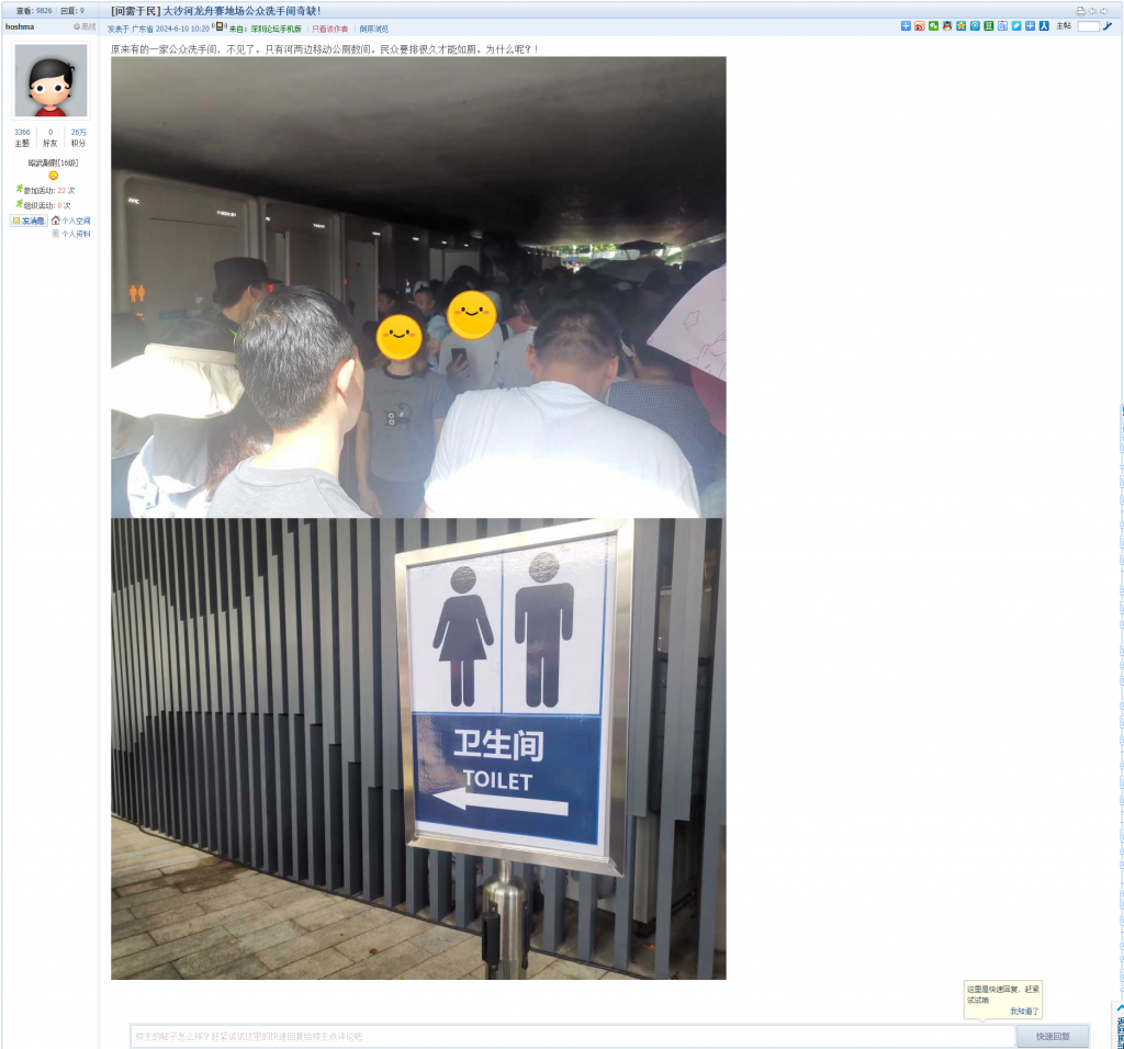20、帖文《大沙河龙舟赛地场公众洗手间奇缺!》