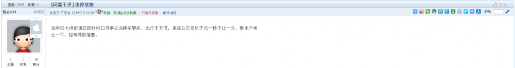 各职能单位如需对网友反映的问题进行回应,可在深圳论坛注册官方账号并通过认证,回帖进行回应。