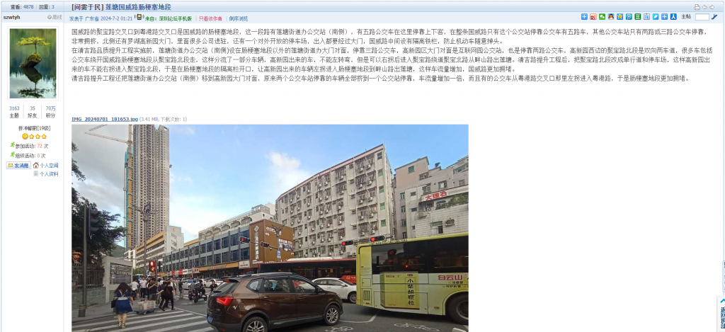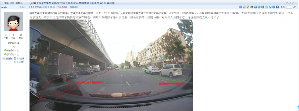 16. 帖文《龙华华荣路立交桥下停车状况持续更新3车道变成1车道后续》