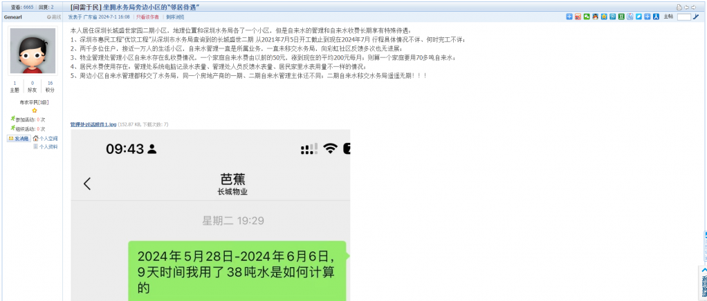 1. 帖文《坐拥水务局旁边小区的“邻居待遇”》