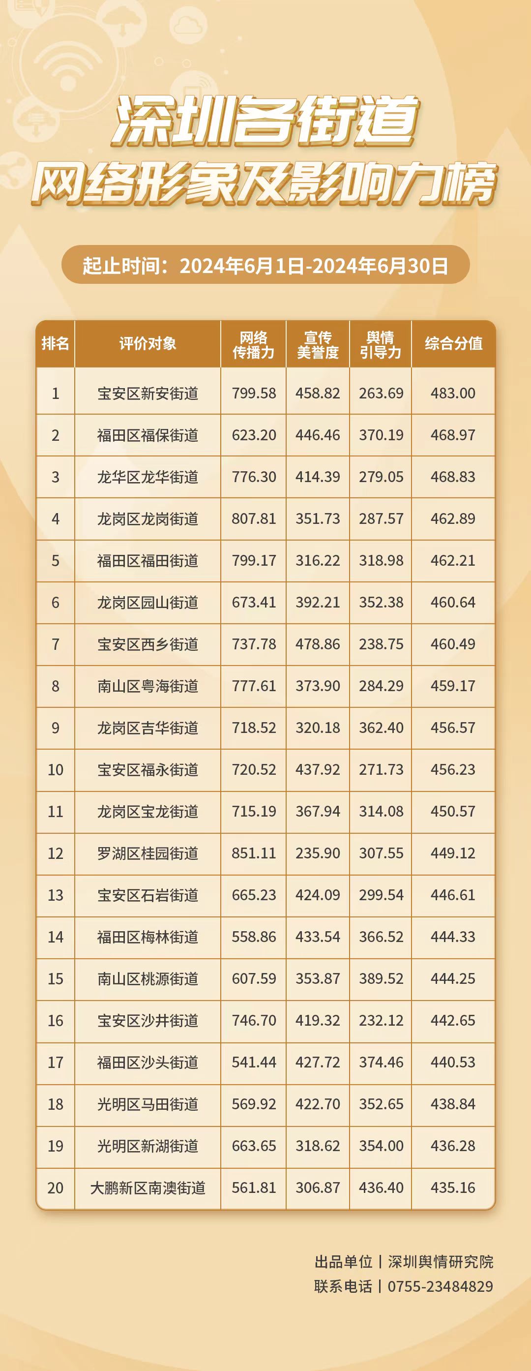6月街道网络形象及影响力榜揭晓,宝安区领衔,多区并进!
