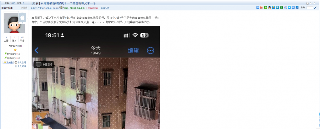 17. 帖文《水斗富豪新村解决了一个高音喇叭又来一个》